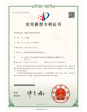 城鎮污水收集處理系統-證書